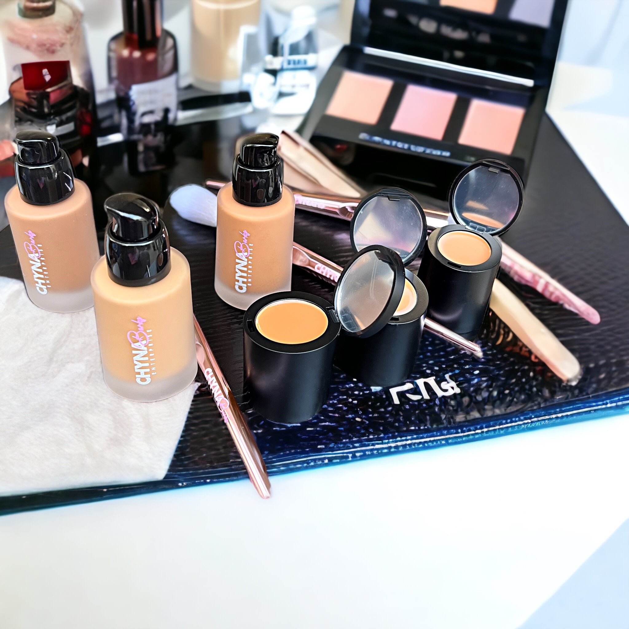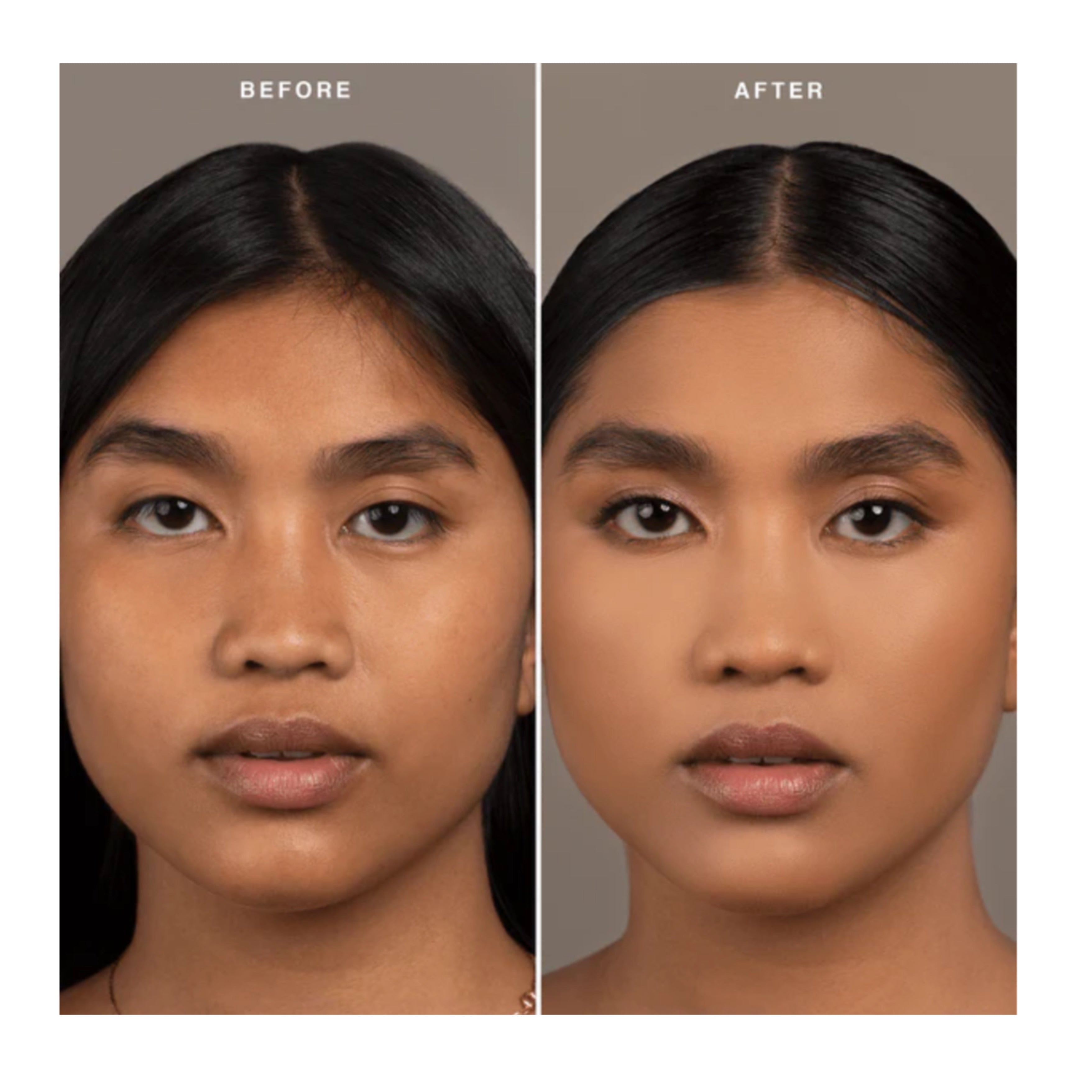 • Apply Foundation using brush or beauty blender , Applying foundation first creates an even base to reduce overall redness, discoloration and minor blemishes.