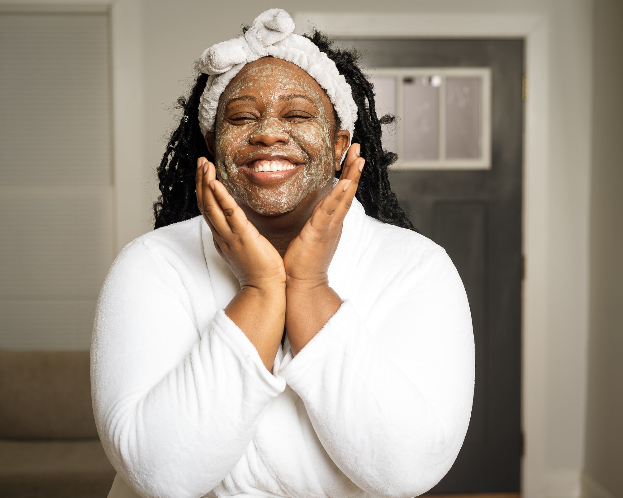 Put a good amount of scrub on your hand and gently rub it into your skin. Use circular motions so it absorbs into the skin well and apply a generous amount of body scrub across your whole body. We recommend starting with your upper body or Face and working your way down. Apply in circular motions across your chest, on your arms, torso, legs – don’t forget your back limbs! Exfoliate your feet last and be mindful of slippery bathroom surfaces.